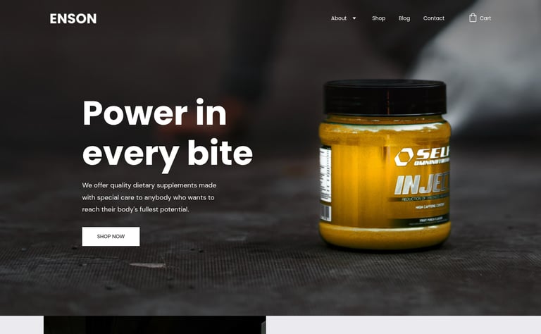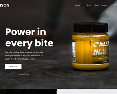 A bold, dynamic storefront designed to capture attention immediately. This layout utilizes a sleek dark mode and high-impact typography to highlight products, making it perfect for fitness brands, supplement lines, or any retail business focused on driving direct sales and conveying energy